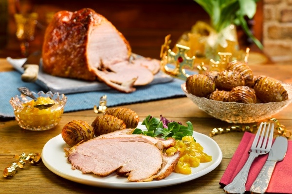 A classic dish for the spread… Maple and mustard glazed gammon slipper with piccalilli dressing and hassle back potatoes.