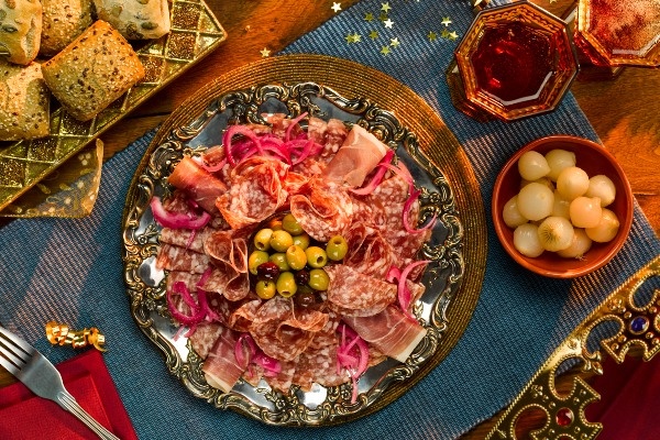 When plating this up, ensure you are adding in extra pops of colour with olives, bread, crackers and more!