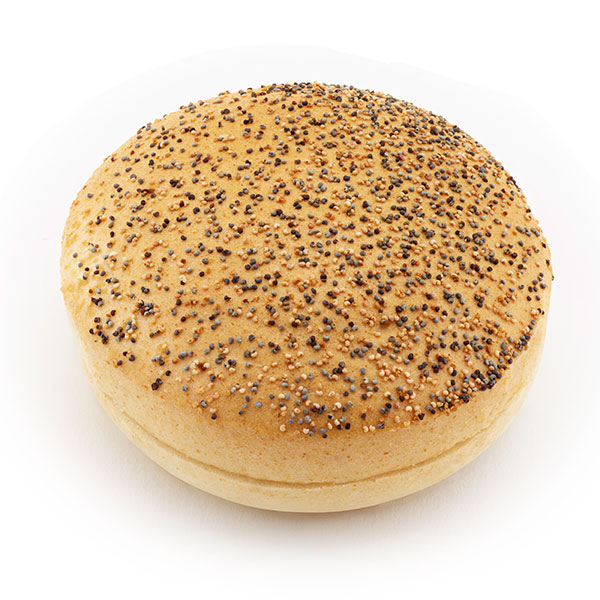 Single packed, frozen, Gluten-Free Burger Buns are made of gluten-free raw materials. Decorated with white and black poppy seeds.