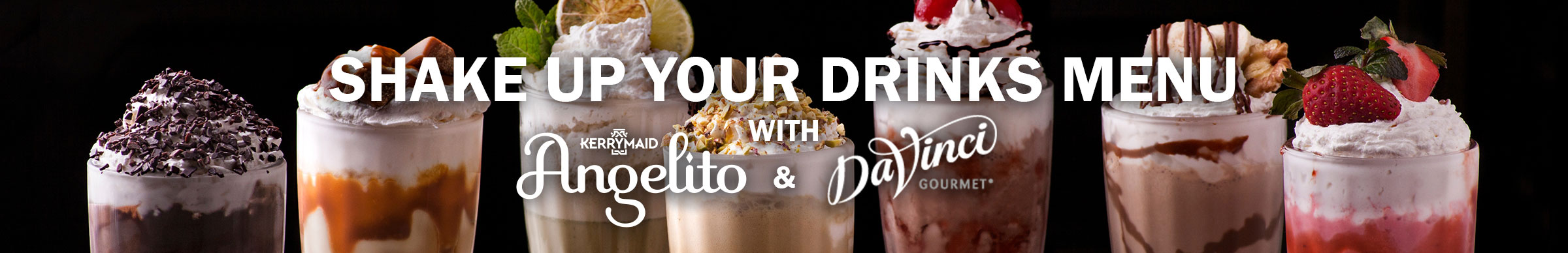 Why not experiment with some fun shakes using our Angelito Ice Cream Mix and toppings to entice your customers. Angelito Ice Cream Mix offers you the perfect base with its signature smooth creaminess.  For exploding flavours and vibrant colours, add some extra magic with DaVinci Sauces and Drizzles then top off your drinks with eye-catching garnishes.