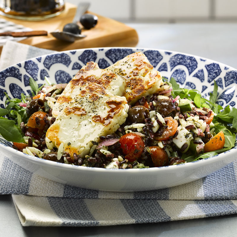 A refreshing dish, made with orzo pasta, black olives, feta cheese and a tangy tomato base dressing. This popular Mediterranean-inspired salad, is known for its bright flavours and versatility.