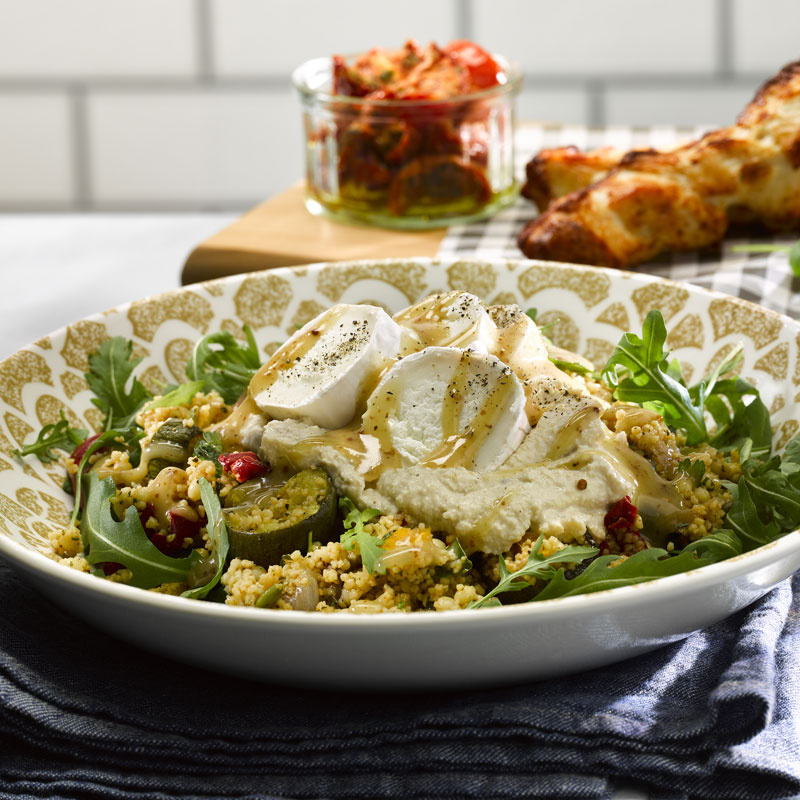 A dish composed of fluffy cous cous, creamy goat’s cheese and fresh rocket, herbs and a tangy dressing. This plate offers a delightful combination of textures, flavours and colours – the perfect summer recipe to help save you time in the kitchen.