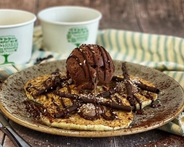 Vegan chocolate pancakes with ice cream and whipped coffee anyone? This insanely yummy treat is perfect to include on your menu and is definitely one for the chocolate lovers! Whether it’s for a super indulgent breakfast (no judgement here), brunch or even to add as a dessert option to your menu, this American vegan pancake recipe is super quick and easy. Take a look for yourself…