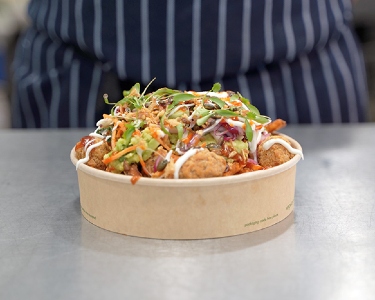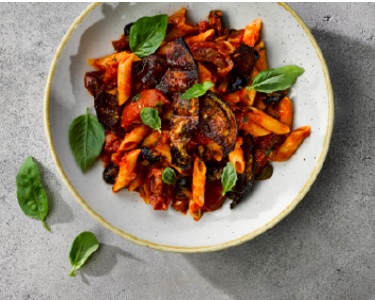 And finally, we have a recipe that’s great to create for in-house dining or as an on-the-go option. It’s a Mediterranean pasta topped with aubergine “bacon”. The aubergine is toasted until crispy and then drizzled with maple syrup for that sweet crunch, combined with the richness from the tomatoes and the sharpness from the fresh olives and capers – it’s a real winner! For an extra twist add fresh chillies or a protein alternative. Discover the full recipe here!