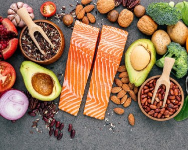 Try swapping animal derived fat spreads and butters, with rapeseed, vegetable or olive oils and spreads. If looking for a meat protein source, look to have salmon, mackerel or trout instead of processed meat like bacon and sausages. And to add texture to foods like salads, add nuts and seeds as a topping. These unsaturated fats contain essential fatty acids omega-3 and omega-6, which will help the nervous system and brain keep healthy6.