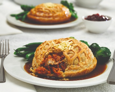 Wellingtons always look amazing on a plate, but often are reserved for meat eaters only. Our vegan smokey bean and pulled jackfruit wellington is a perfect vegan option on your menus. Simply cook in the oven from defrost at 170˚C for 12-15 minutes (20-25 minutes from frozen) and serve with your accompaniments of choice.