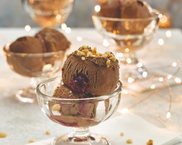 Not your typical festive flavours but taking inspiration from the well-loved black forest flavour combination, this delicious ice cream from Yarde Farm is ideal as a simple serve dessert option. What’s not to love with a combination of slightly bitter dark chocolate and sweet Italian Amarena cherries, balancing each other out perfectly in this ice cream?