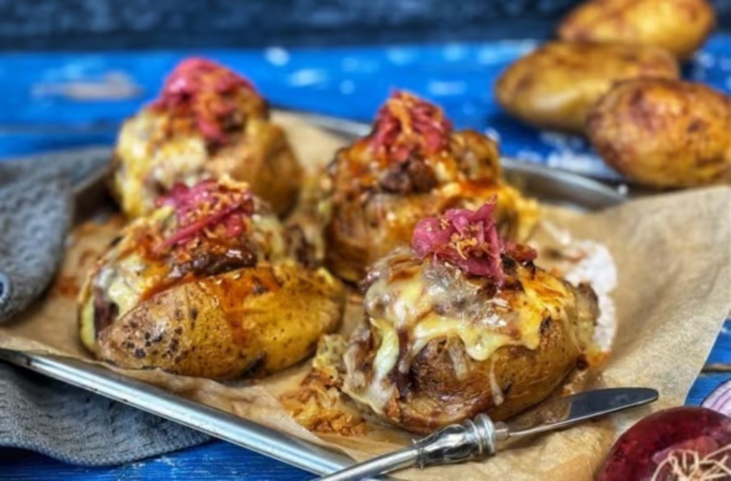 Try our recipes: Jacket potatoes loaded with pulled beef, caramelised onion and cauliflower cheese, or loaded chimichurri pork fries, or even Old Bay lobster-glace loaded hash browns, premium toppings on low-cost bases.