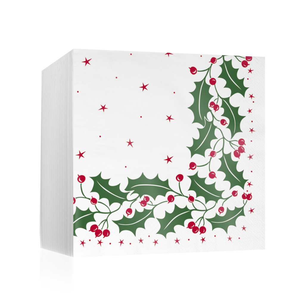 Our red (19341) and green (19802) table covers are the perfect solution as they are made from a linen like material, with the added bonus of being industrially compostable. Next, to add to your Christmas table must-haves is a snowflake napkin, available in silver (14045) and gold (14046) to compliment any set up. New for this year is the Christmas Holly & Berry White Napkin 2Ply 40cm (26123) complementing our red and green crackers.