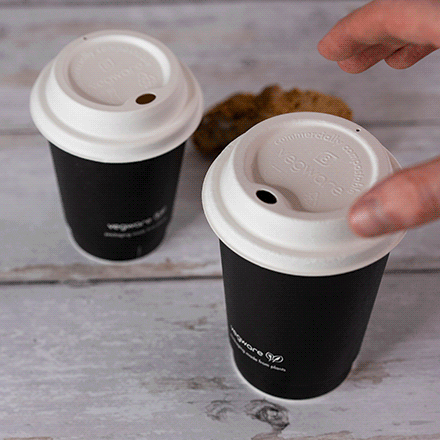 Great at keeping drinks warmer for longer with their thermal properties, constructed with sustainably sourced double-wall board with a plant-based PLA lining, meaning you can rely on no spills. Pair them with a moulded fibre lid (11656) perfect for on the go, made from reclaimed sugarcane fibre and pressed into a durable, hot-cup lid.