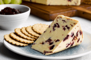 This creamy, crumbly Wensleydale cheese classic comes with a delightfully fruity twist extruded into 1.5kg half moons.