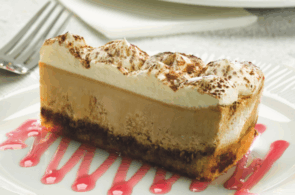 Two classic desserts are combined into one: a chocolate crumb base and mascarpone flavoured cheesecake.