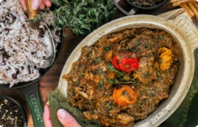 • Caribbean: dishes like jerk, patties, curries or stews that contain fish and seafood, chicken, goat, and tropical ingredients like sweet potato, mango, pineapple, lime, coconut, and chilli