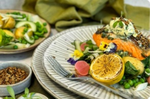 The clean flavours of ChalkStream®️ trout raised in the fast-flowing, pure chalk stream waters of the Rivers Test and Itchen in Hampshire, are complemented with a light and refreshing salad, in this delicious and attractive dish.