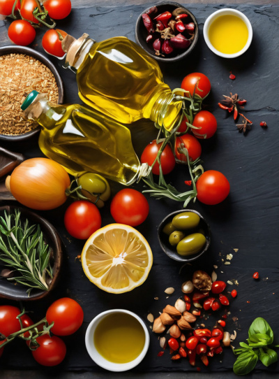 Greek: Lamb, chicken, beef, seafood (calamari, octopus, prawns) feta, lemon, sesame, tahini, olives, tomatoes, courgettes, spinach, aubergine, lemon, orange, garlic, herbs (oregano, mint, parsley and thyme especially) and nuts (pistachios, hazelnuts, pecans, yoghurt etc.