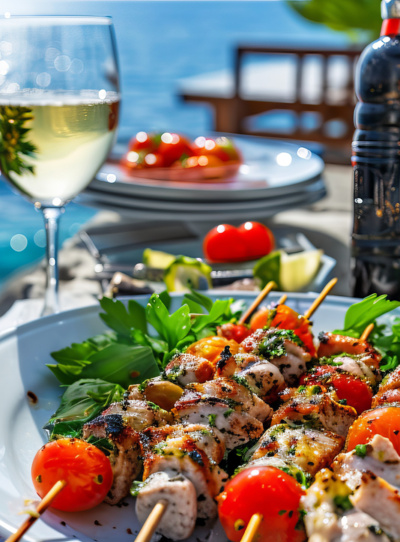 Souvlaki – grilled meat on skewers, often served with warm pitta and salad