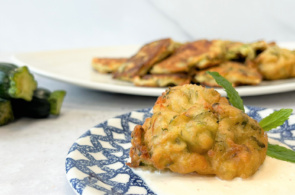 Kolokythokeftedes – Courgette balls made with grated or pureed courgettes, lightly fried and served with tzaziki – a yoghurt, mint and cucumber dip