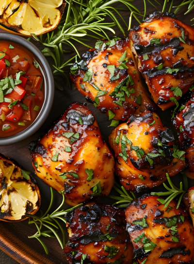 Chimichurri – a green salsa made with finely chopped parsley, oregano, onion, garlic, chilli flakes, olive oil, and lemon (or vinegar) served with meats