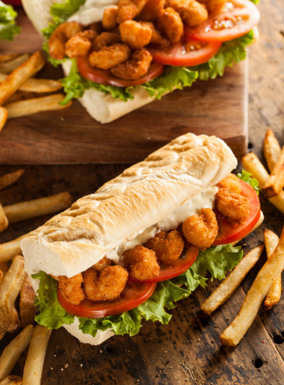 From the Southern States: Cajun, Creole and soul food dishes like: chicken and biscuits, fried chicken, jambalaya, pecan pie, sweet potato pie, gumbo and po’boy sandwiches,
