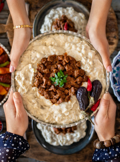 - Manti – Turkish dumplings filled with spiced meat, often boiled or baked and topped with garlic yoghurt and spiced olive oil