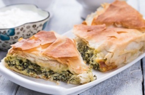 Spanakopita – a spinach, feta and filo pie, which can also be served in smaller formats