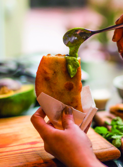 - Empanadas: yellow corn dough parcels, baked or deep fried and filled with chicken or beef and cheese and served with salsa (can also be made with sweet fillings).