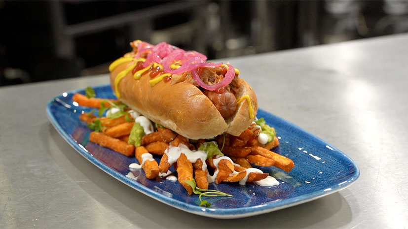 - Place your hot dog on the serving plate and arrange the sweet potato fries around it.
