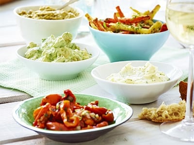 Oven-dried tomatoes in an Italian marinade Marinate the Ardo oven-dried tomatoes in rapeseed oil, 20g Ardo Italian herb mix, lemon zest from half a lemon and 1 tbsp. Ardo garlic diced. Season with a pinch of salt and black pepper. Let it marinade for a minimum of 4 hours before serving. Crunchy avocado cream Cut the avocados into rough pieces and mix them with the coriander, sour cream and shallots. Season with salt and pepper to taste. Green olive tapenade Puree all the ingredients with a hand blender. Season with salt and pepper. Aioli with Italian herb mix Mix the mayonnaise with 1 tbsp Ardo garlic blocks, Ardo Italian herb mix and a little lemon juice to taste. Season with salt and pepper. Mint-baked vegetable fries Mix the Ardo vegetable fries with 1 tbsp. Ardo mint and bake them for approx. 20-25 minutes in the oven at 200°C. Season with salt. Looking for a vegetable wholesale supplier? Click the link to find out how we can help you.