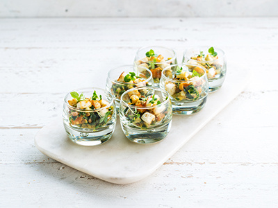 - Put in each glass some Veggie mix Indian style and finish with the fried paneer.
