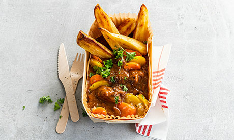 - Fry the meat in the butter, add the pre-fried onions, beer and stock.