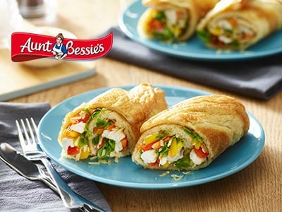 - For each wrap, place cheese and lettuce down the centre of one Giant Yorkshire. Top with chicken breast slices, sliced peppers, parsley and salsa. Roll and secure with wooden pick in two places.