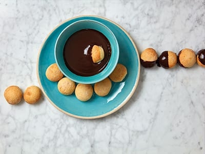- Serve the dough balls while warm and soft with a bowl of the chocolate dipping sauce.