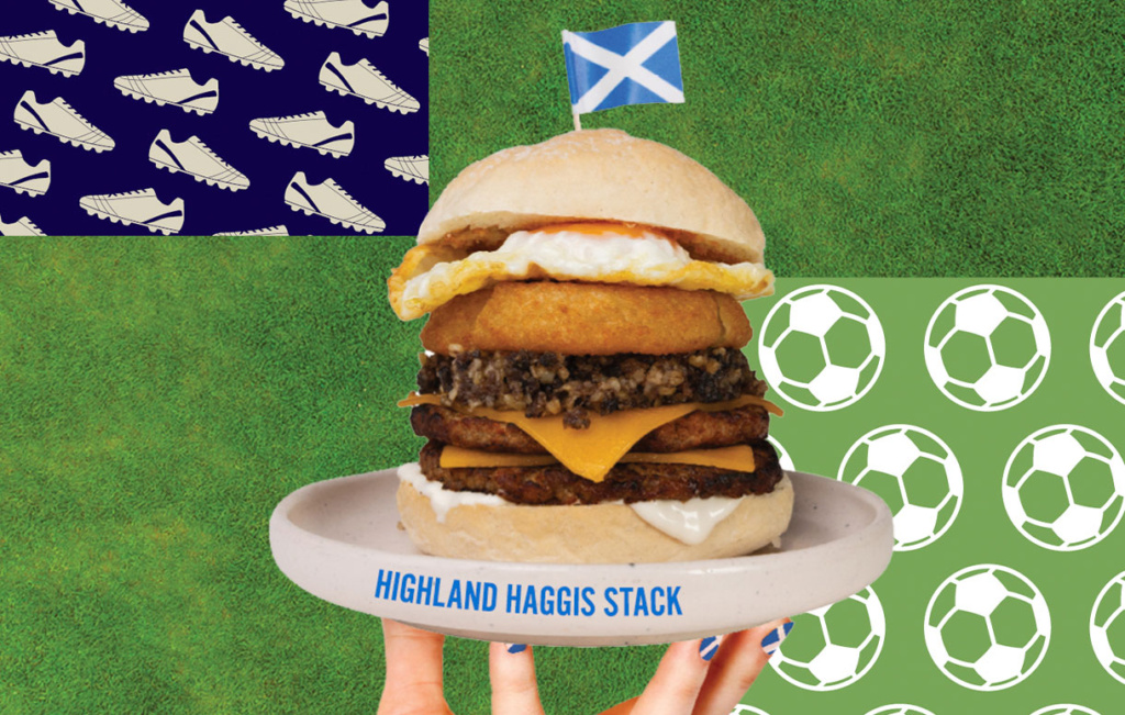- Spread 1 tbsp of malt vinegar mayonnaise to the bottom bun, add 1 cooked 2oz burger patty, top with Orkney cheese, then repeat with the other patty and cheese