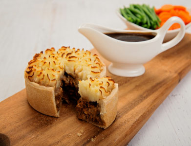 - Spoon in a portion of the steak pie filling and top with the mashed potato.