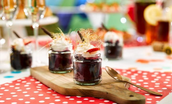 - Once the sponge is cool, chop the cake into cubes and then layer the pots with the sponge, cherry pie filling, and cream, making sure to finish with cream on the top.