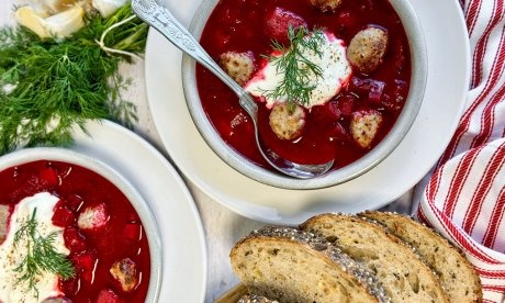 - Ladle into serving bowls. Garnish with sour cream and dill, and serve with brown bread (optional).