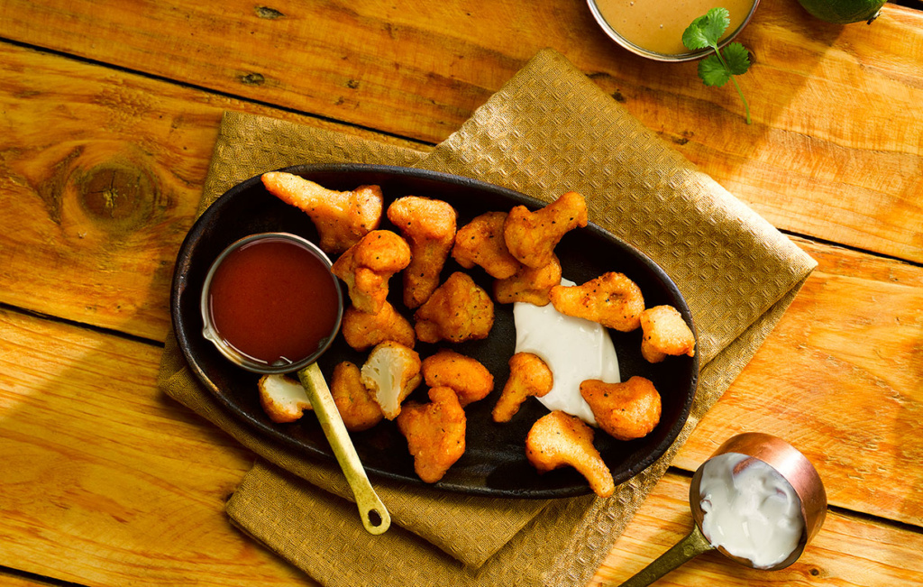 - Serve with the hot sauce and blue cheese dip in separate dip pots
