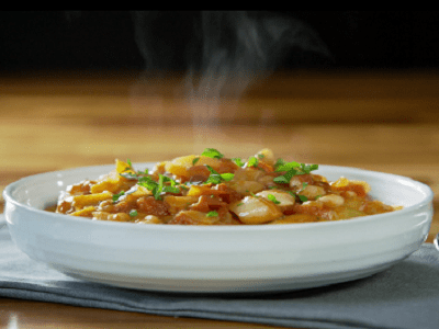 - Add the cans of tomatoes to the pan and simmer for 20 minutes.