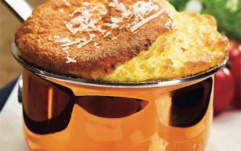- Using the butter and crushed shaved parmesan, grease and dust the ramekin moulds for the soufflé.