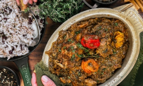 - Put the chicken into a bowl, add the green seasoning, mix well and leave to marinade for at least 4 hours or ideally overnight.