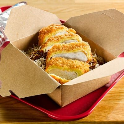 - Place chicken on a tray and the breadcrumbs on another tray.