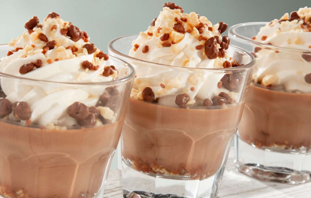 - While waiting whisk the remaining cream until a stiff peak once chocolate mix is cool fold through the whipped cream and half the crunchie bits