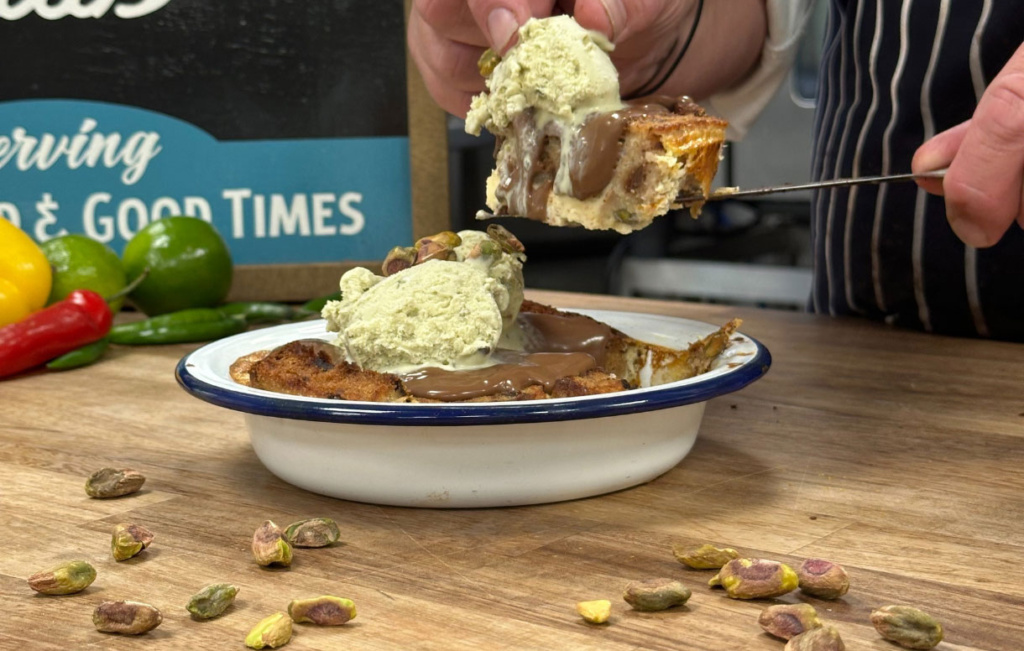 This cosy classic gets a luxurious upgrade- soft brioche soaked in a rich custard, baked until golden, then finished with crunchy pistachios, warm chocolate sauce and a scoop of cool pistachio ice cream. It’s comfort food with a touch of elegance, turning a nostalgic favourite into a dessert worth savouring slowly.