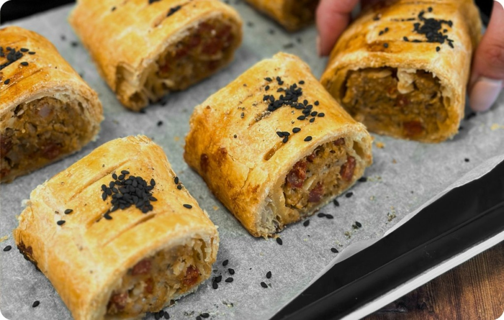 - Place the sausage rolls onto a baking tray and cook until golden brown and above 75c.