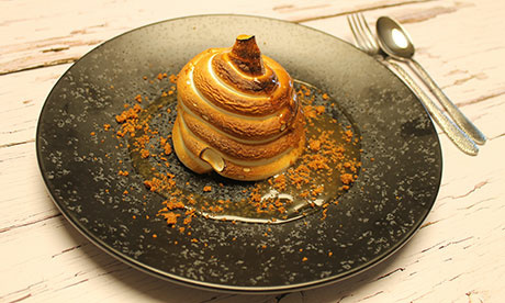 - Blow torch the meringue until golden (or finish in a hot oven at 220) and then finish with a drizzle of salted caramel sauce and a sprinkle of biscoff crumb.