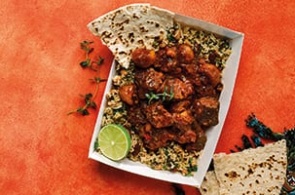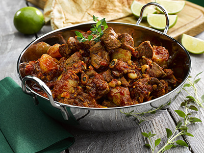 - Pre heat oven 180ºc. 1. Mix the goat with 20ml oil, 20g curry powder, 10g mixed spice and the seal in a very hot pan until lightly caramelised.