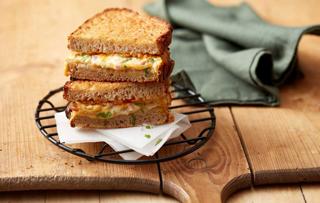 - Mix the mayonnaise, 55g of tuna and the cheddar.