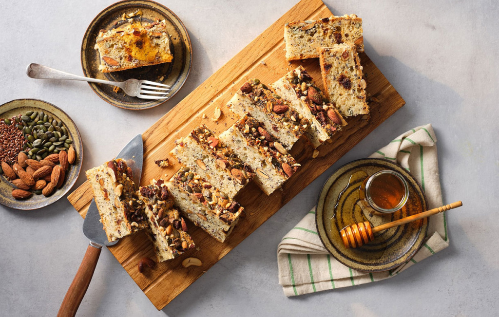 - Allow to cool fully before turning out, cut into bars and drizzle with a bit more honey.