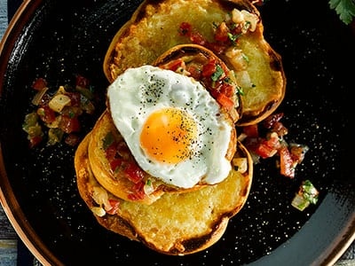 - Heat up a pan and melt the butter, add the garlic, chillies and onions until soft and translucent then add the tomatoes to create a salsa and finish with salt and white pepper.