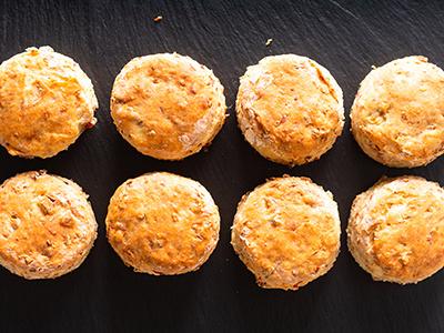 - Put in the oven and bake for 15-20 mins until the scones have risen and are golden brown. Serve warm, buttered for added indulgence!